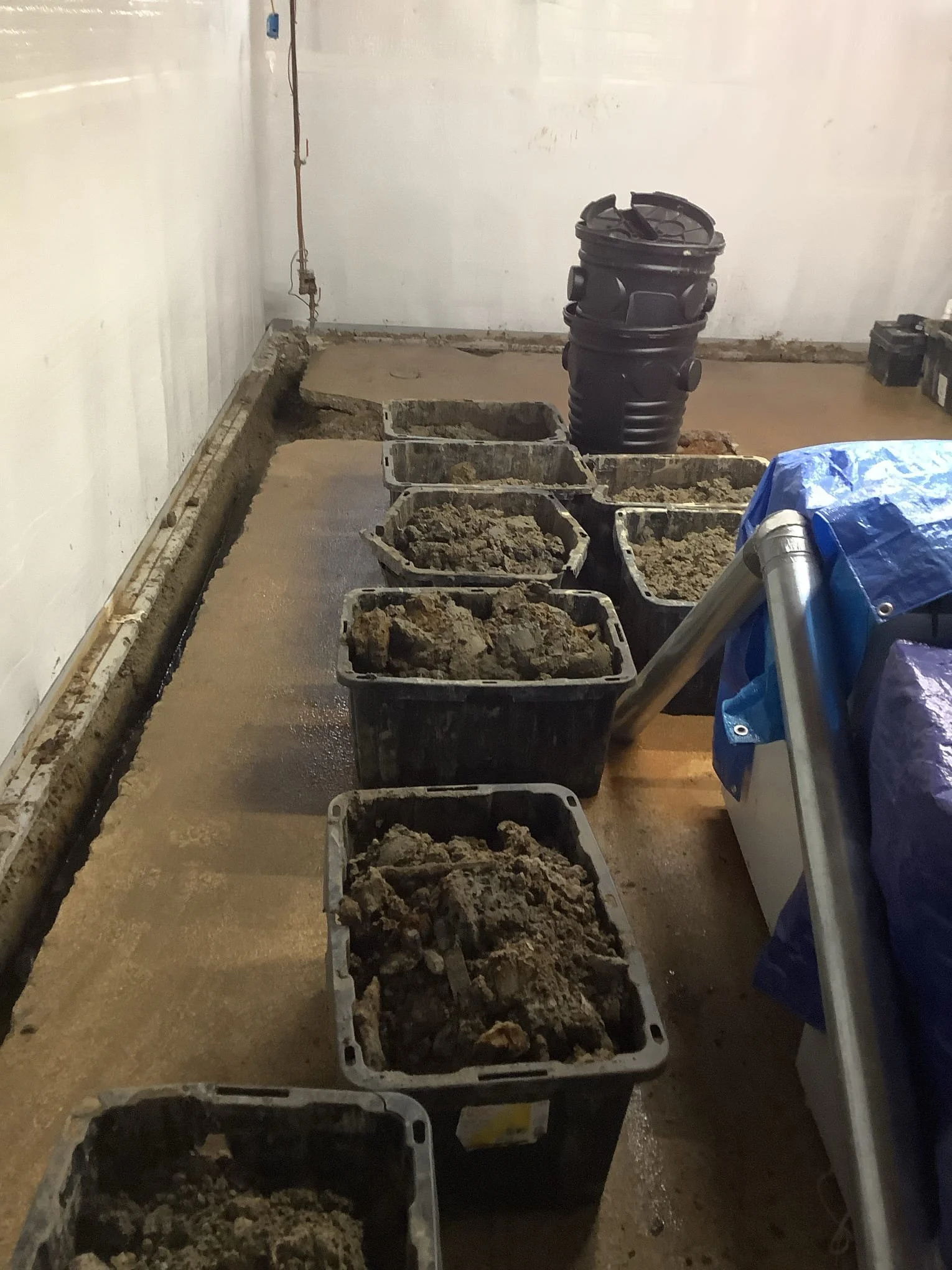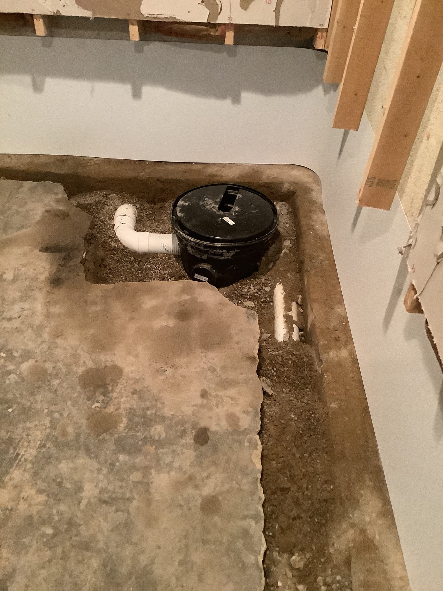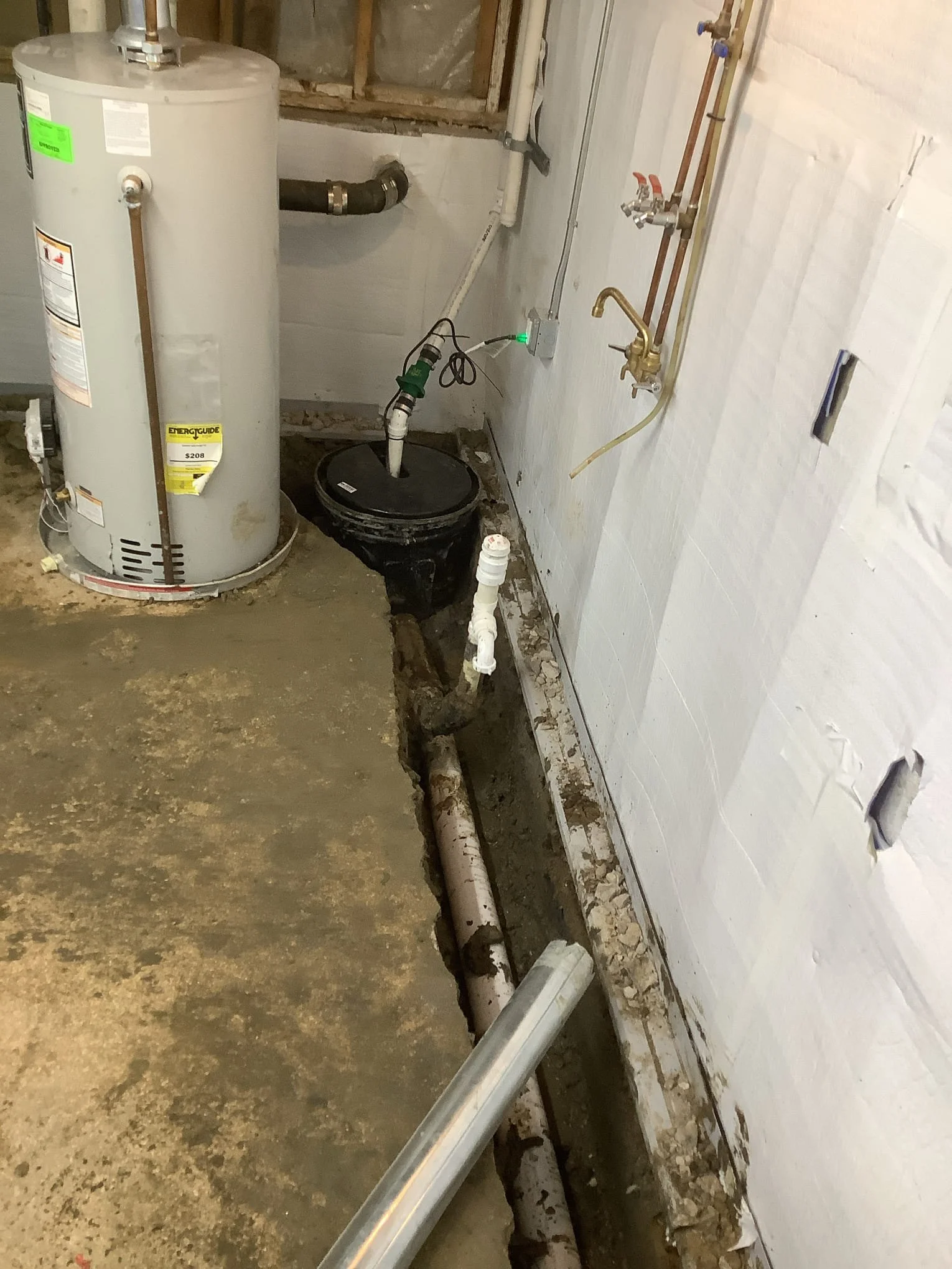 This basement had a non-perimeter drain layout, with previous piping running through the center of the floor instead of along the foundation walls. This design caused water to pool in multiple areas, hindering the system's ability to collect groundwater effectively. During heavy rains, the basement flooded in the middle section rather than draining toward the sump pump.