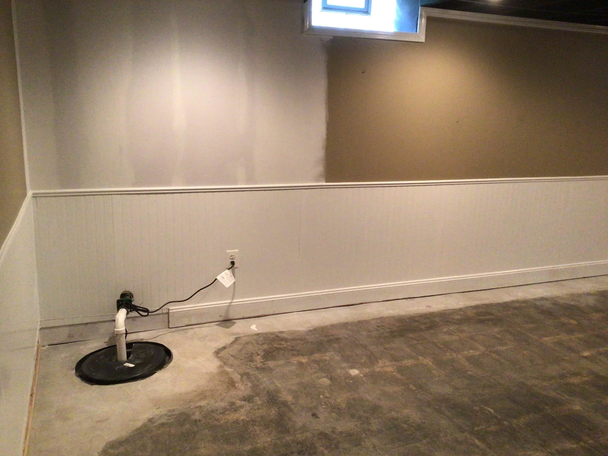 Following the installation of our complete interior waterproofing system, this basement is now completely dry and protected. The new drain tile, sump pump system, and wall vapor barrier work together to redirect groundwater safely away from the foundation.