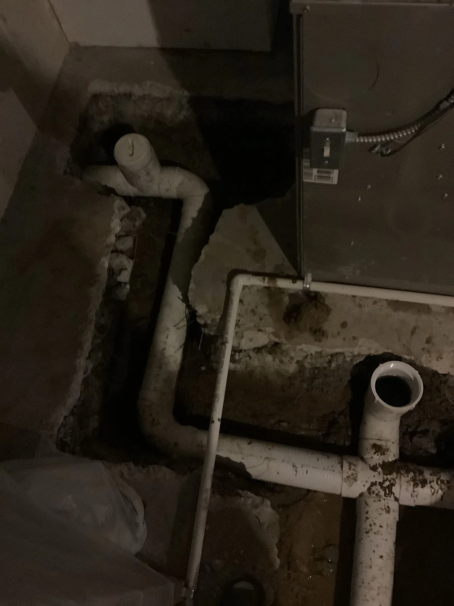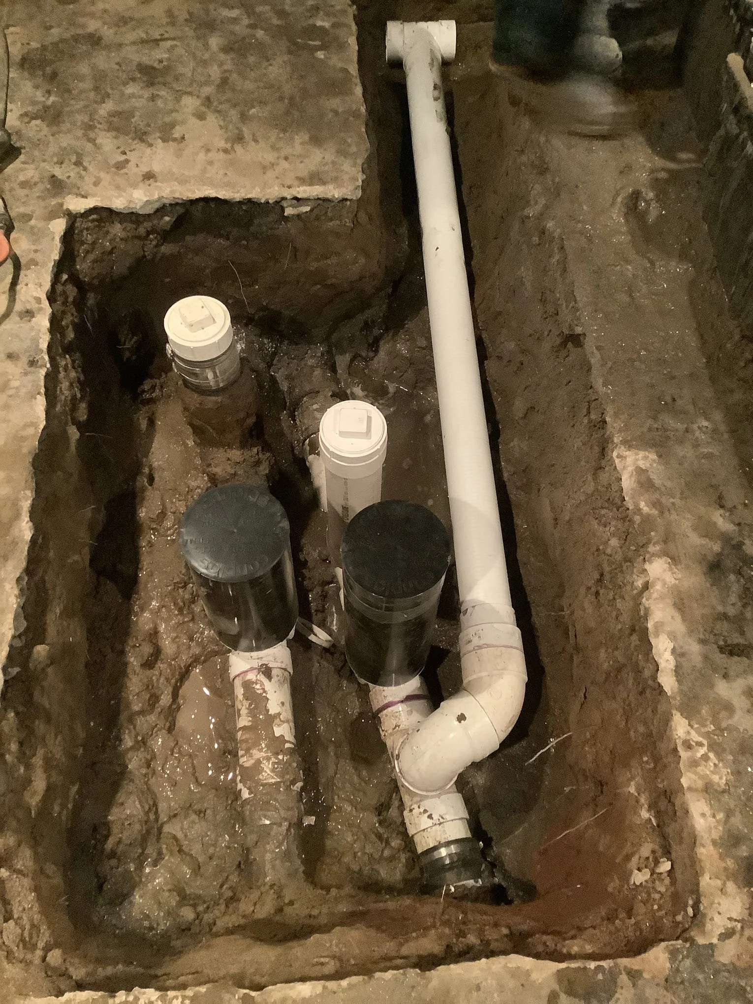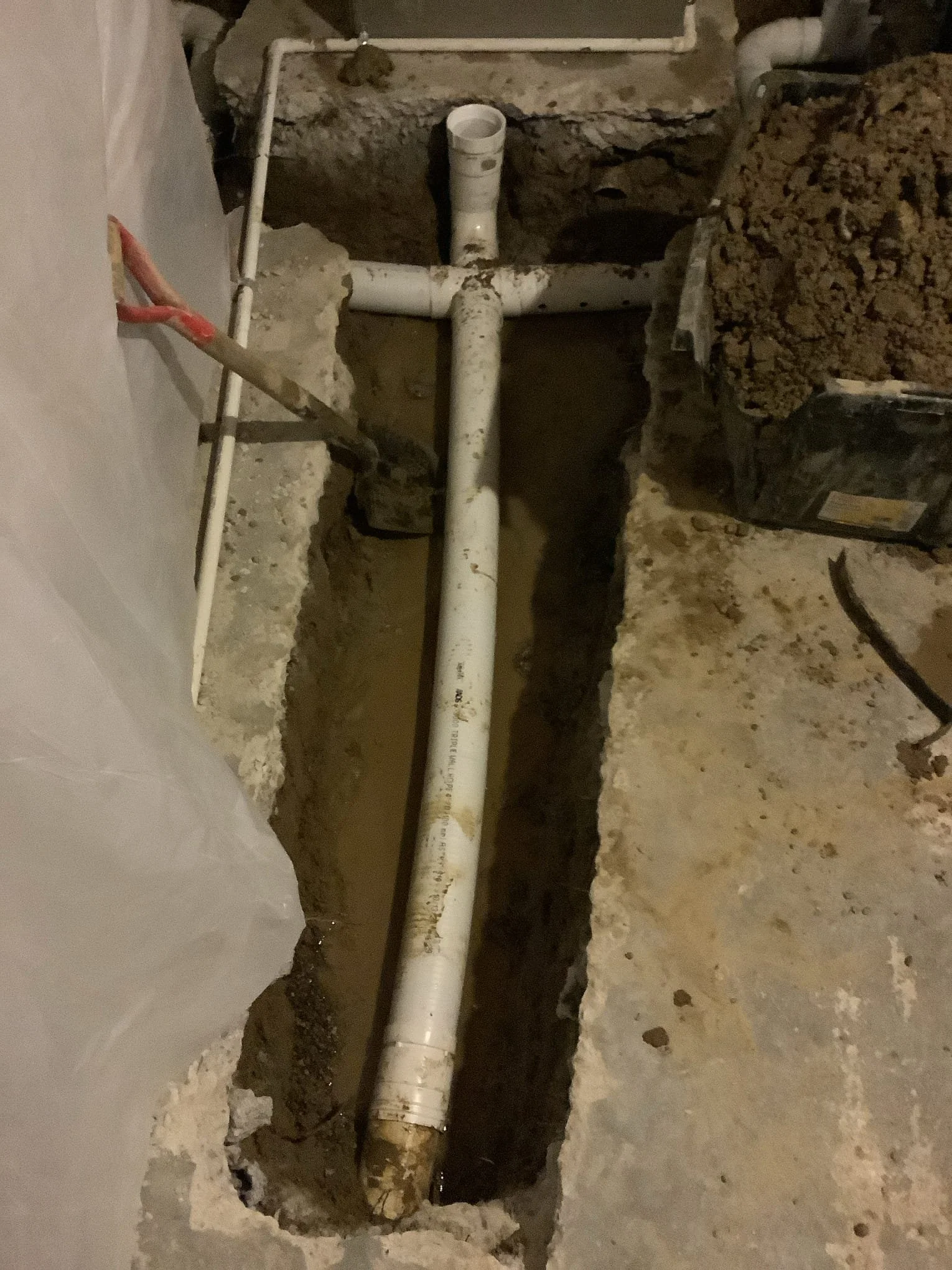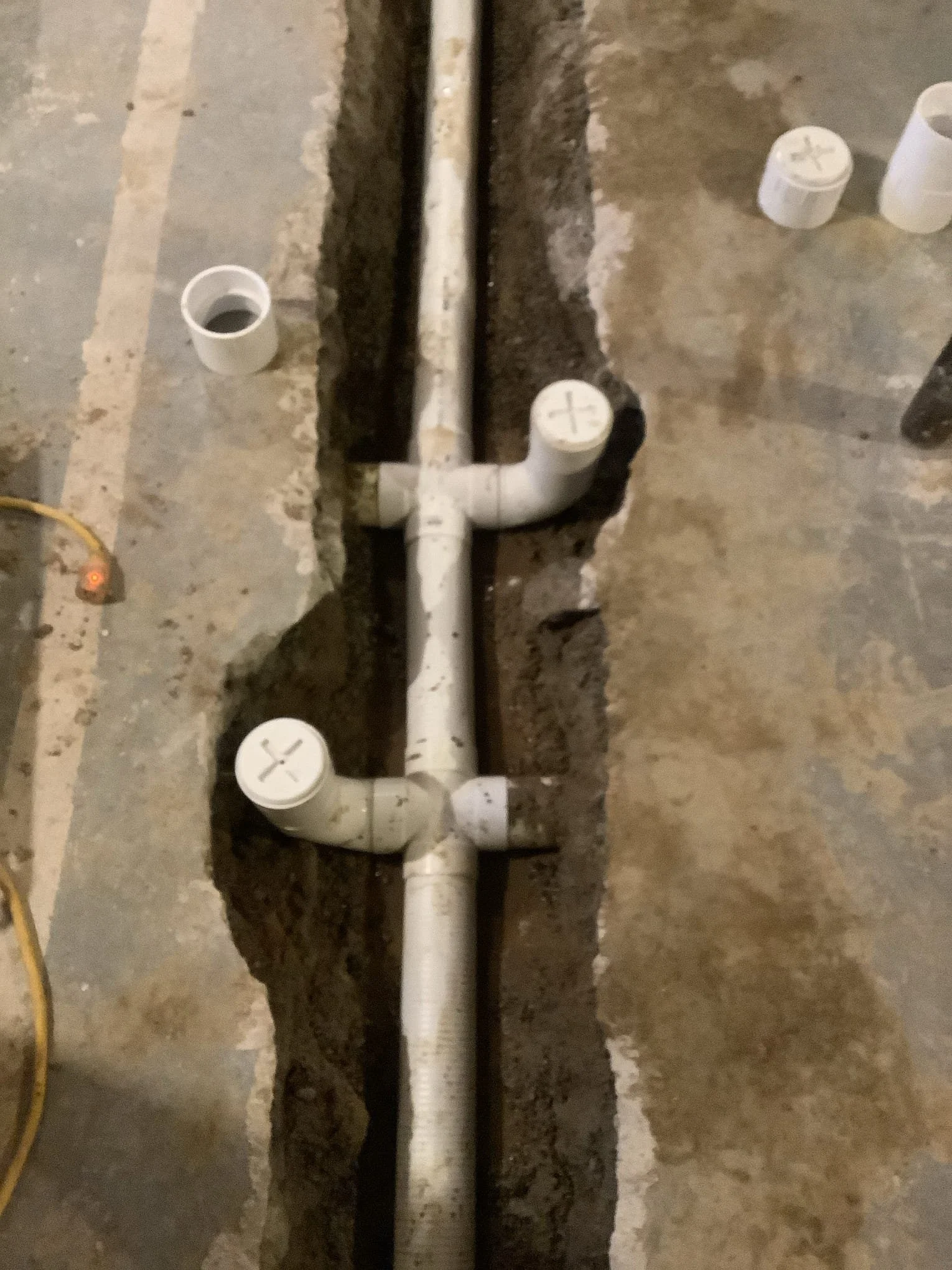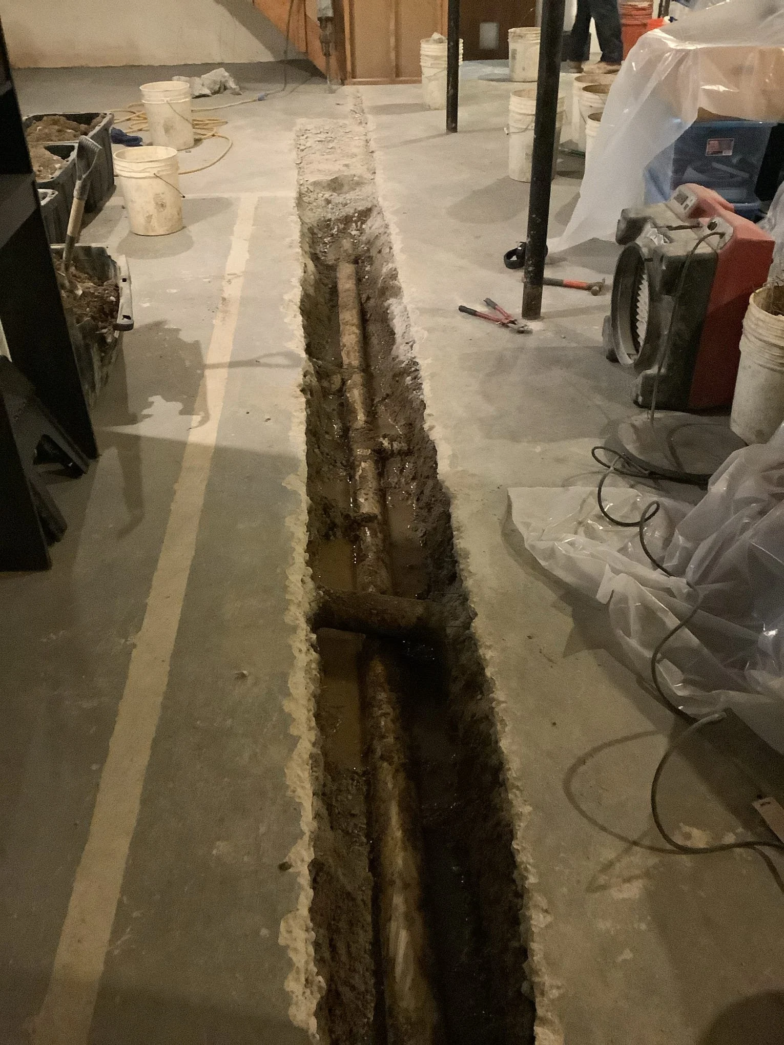 Every section of pipe was leveled, pressure-tested, and surrounded with drainage stone before being re-poured with fresh concrete for a seamless finish.