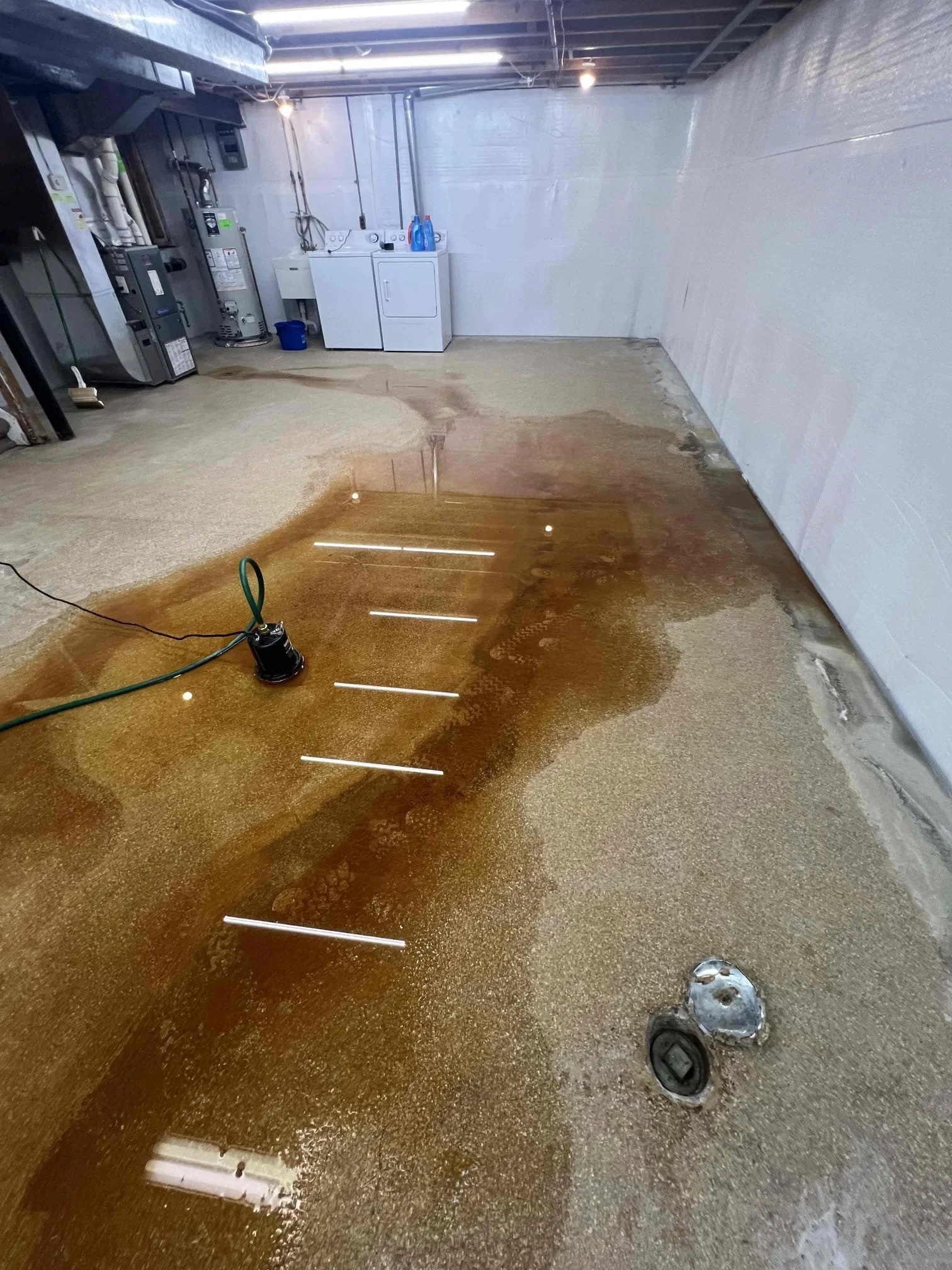 We installed an interior waterproofing system, featuring a sump pump, drain tile, and vapor barrier, to capture and redirect water away from the home. After installation, the basement stayed completely dry — even during the next major storm.